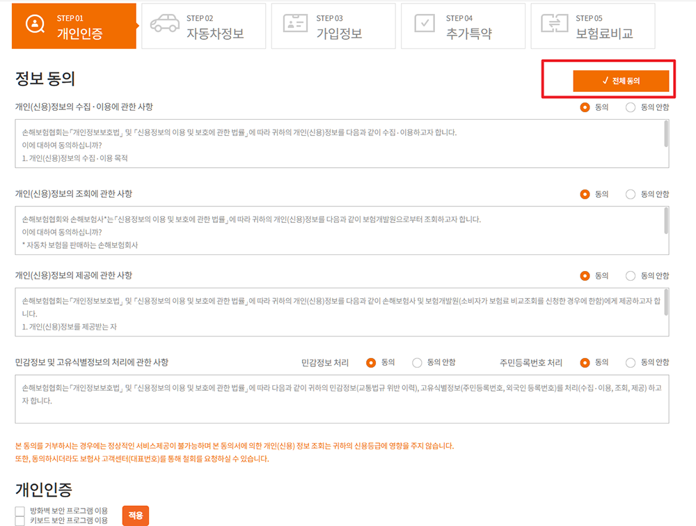 - 담보 조건 설정: 원하는 보장 범위와 담보 항목을 선택합니다.