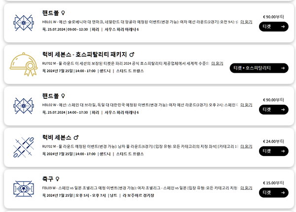 - 조기 구매: 인기 종목의 경우 티켓이 빨리 매진될 수 있으므로 가능한 빨리 구매하는 것이 좋습니다.