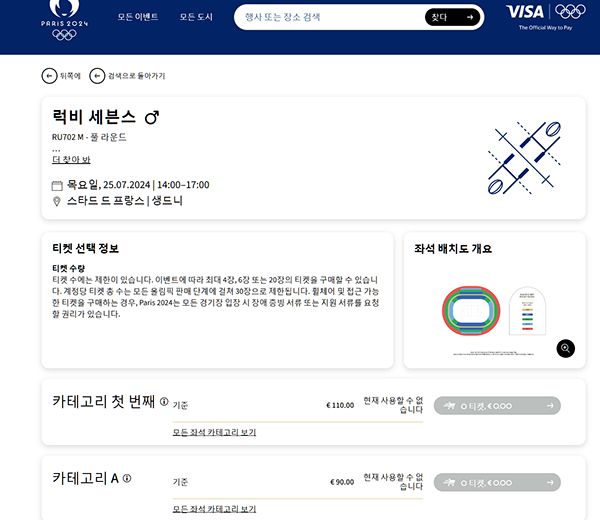 - 경기 종목: 인기 종목일수록 티켓 가격이 높습니다. 예를 들어, 육상, 수영, 체조 등은 인기가 많아 상대적으로 높은 가격을 형성합니다.